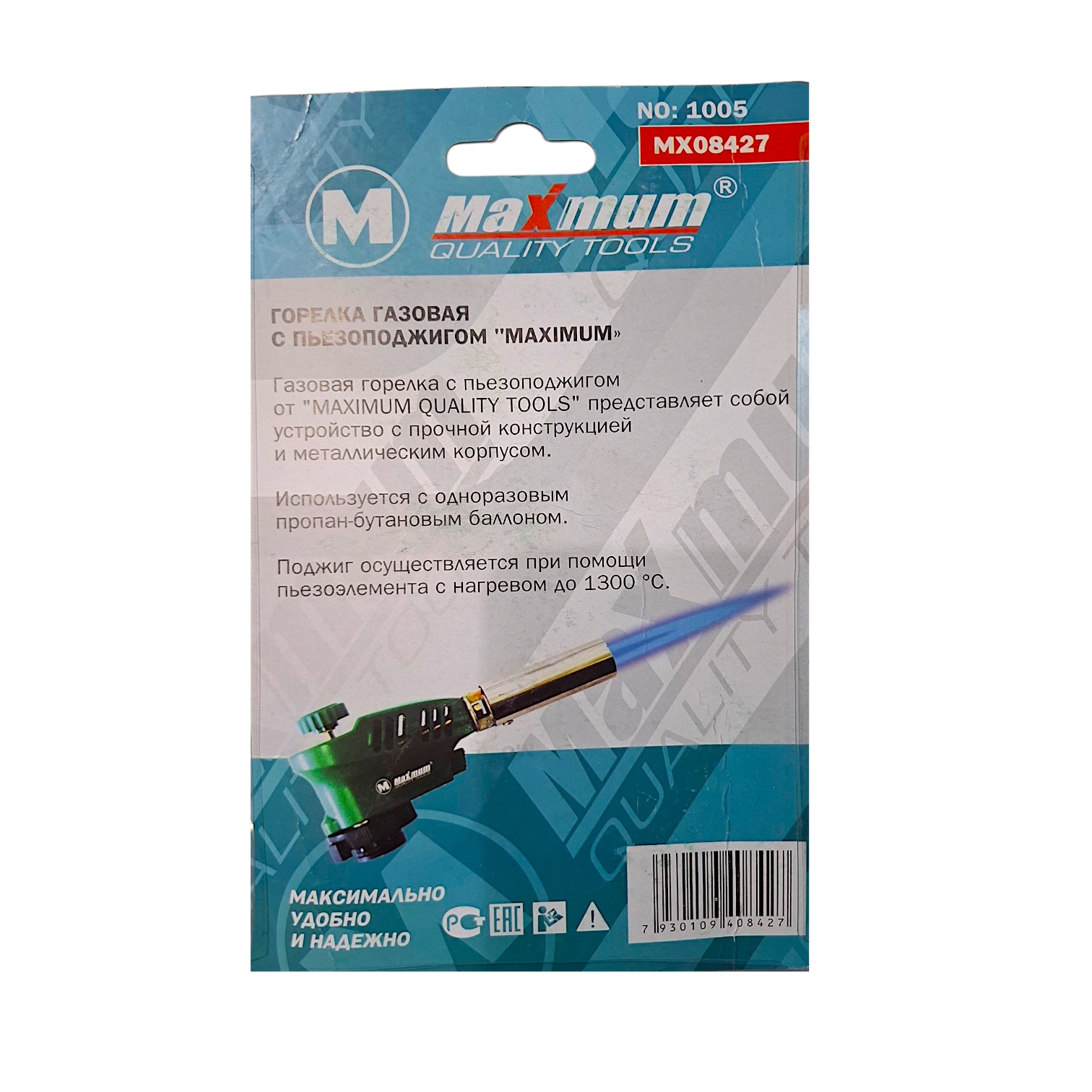 Горелка оснащена пьезоподжигом и вентилем тонкой регулировки пламени. Для работы потребуется балонн на основе газа пропан/бутан.